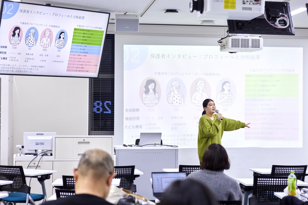 卒業プロジェクトを通して、これまであまり話す機会のなかった保護者の方と対話を重ねる機会が多くありました。その中で、今の子育てのリアルや大学生に期待していることを直接聞くことができました。保護者の方から「大学生ともっと話してみたかった」という言葉をいただき、私たちが提供している場は、世代間をつなぐ対話の場でもあるのだと気づくことができました。