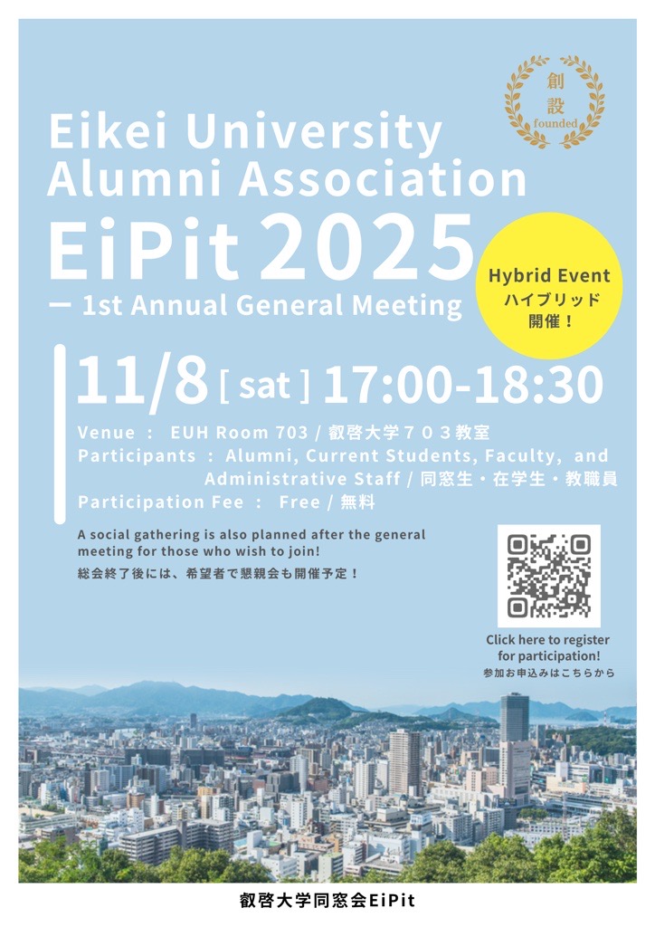 We are pleased to announce that the 1st EiPit Alumni Association General Meeting will be held on Saturday, November 8, 2025.