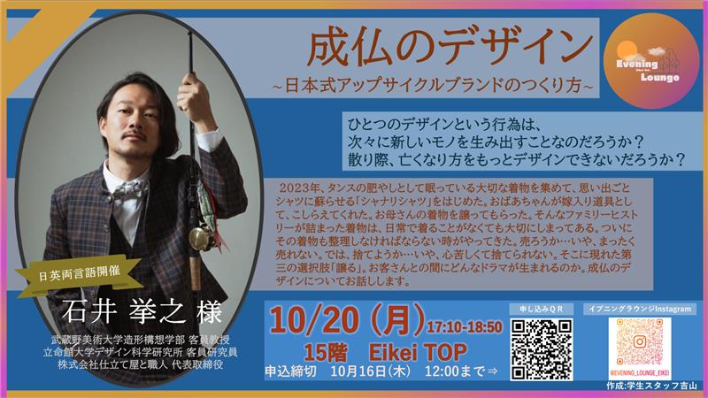 [Mon. Oct.20 Evening Lounge] Mr. ISHII Takayuki