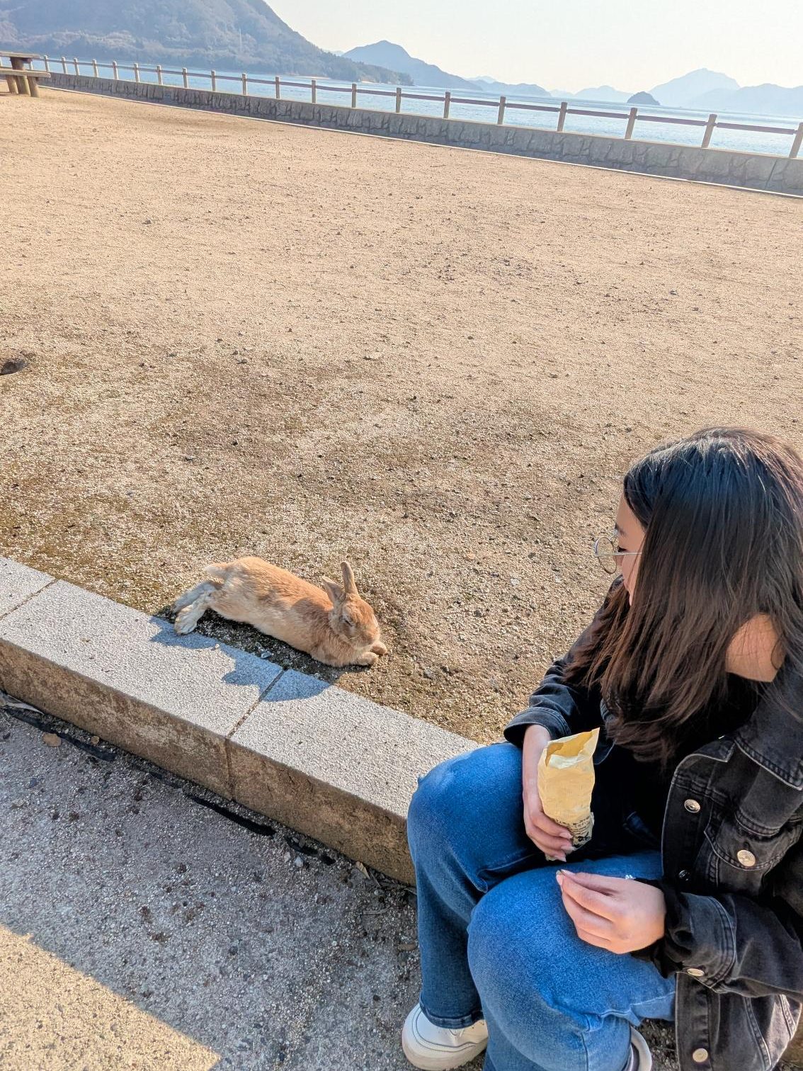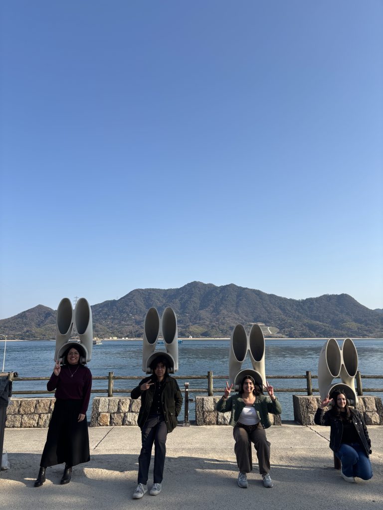 Blessed with pleasant weather, the group explored the historic townscape preservation district in Takehara City and visited Okunoshima Island, where they had the opportunity to interact with the island’s wild rabbits.