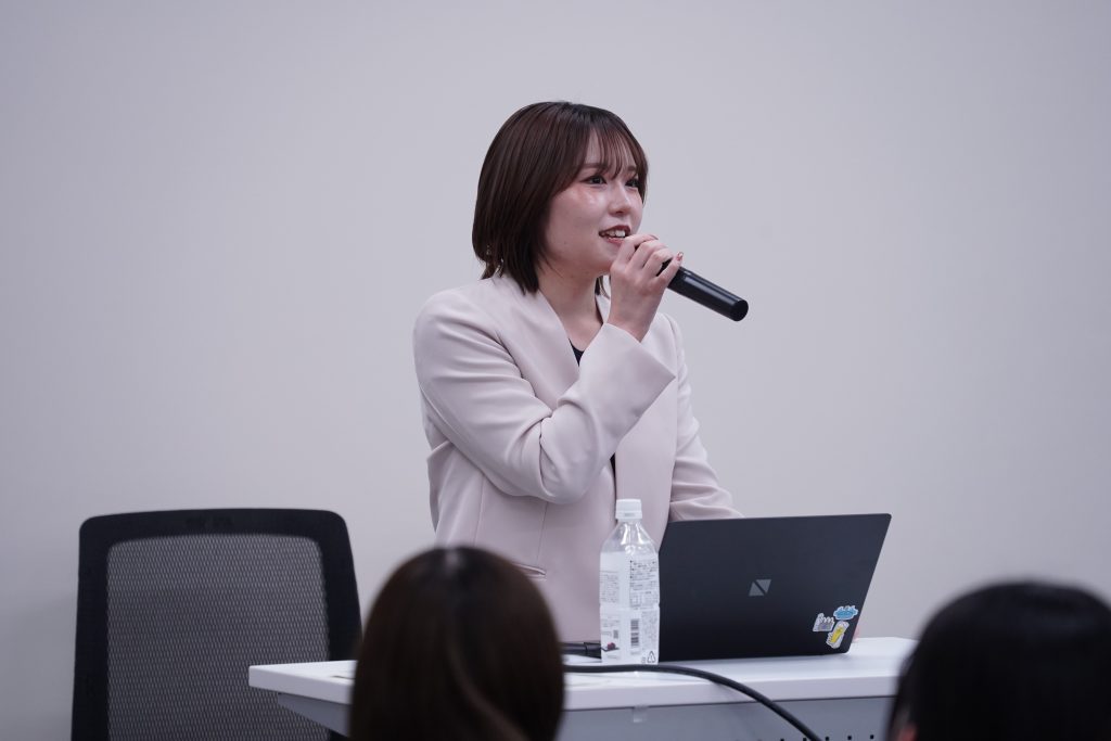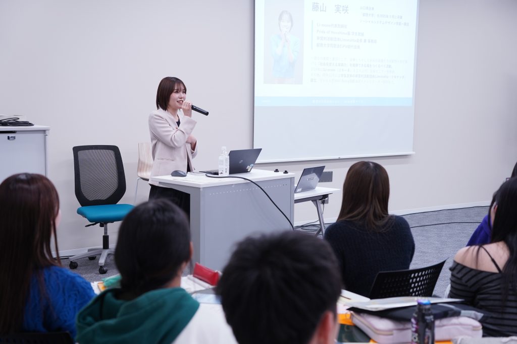 Founded by members of the first graduating class, the Alumni Association (EiPit) is approaching its first anniversary. This occasion marked the first opportunity to introduce its activities to new students. Ms. Fujiyama shared reflections on her journey as a member of the inaugural class of Eikei University of Hiroshima, the story behind the establishment of EiPit, the challenges she faced during her student years, and her experiences after graduation. Her message provided new students with a valuable opportunity to begin envisioning their own futures.
