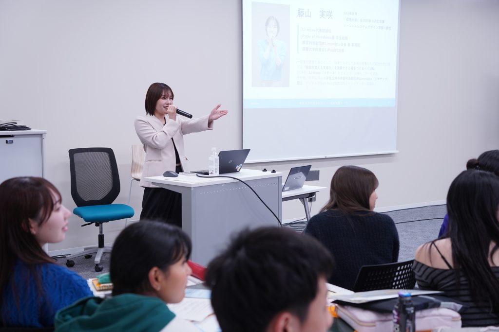 On Monday, April 6, 2026, Ms. Fujiyama, President of the Alumni Association (EiPit) and a member of the inaugural class, took the stage at the Jump Start Workshop to offer words of encouragement to students who enrolled in the spring of 2026.