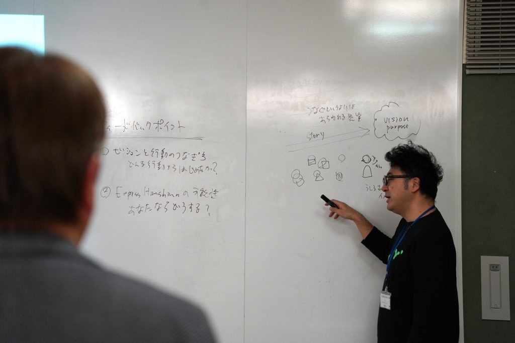 社員の意識や行動を可視化するために行われたアンケート結果をもとに、仕事の楽しさや価値観の浸透についての取り組みが紹介されました。定量データと現場の実感を行き来しながら、組織改善に向き合う姿勢が共有されました。