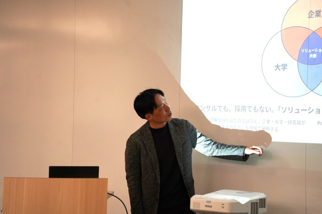 ・学生と実践教育プラットフォーム協議会員企業の方が、自身が関わっているプロジェクトについて発表し、お互いの活動を知る会です。