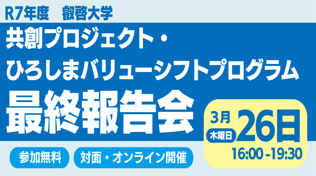 【参加者募集】3月26日(水) 共創プロジェクト・ひろしまバリューシフトプログラム最終報告会