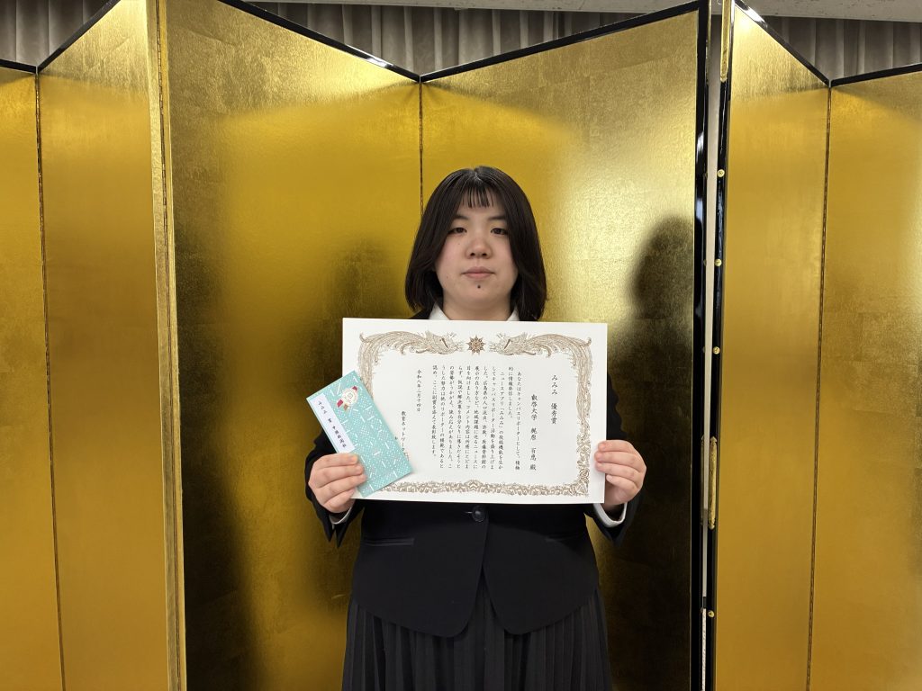 2026年2月14日(土)、広島市中区の中国新聞ビルで2025年度「キャンパスリポーター賞」の表彰式が行われ、4年生の梶原百恵さんが『みみみ優秀賞』を受賞しました。
