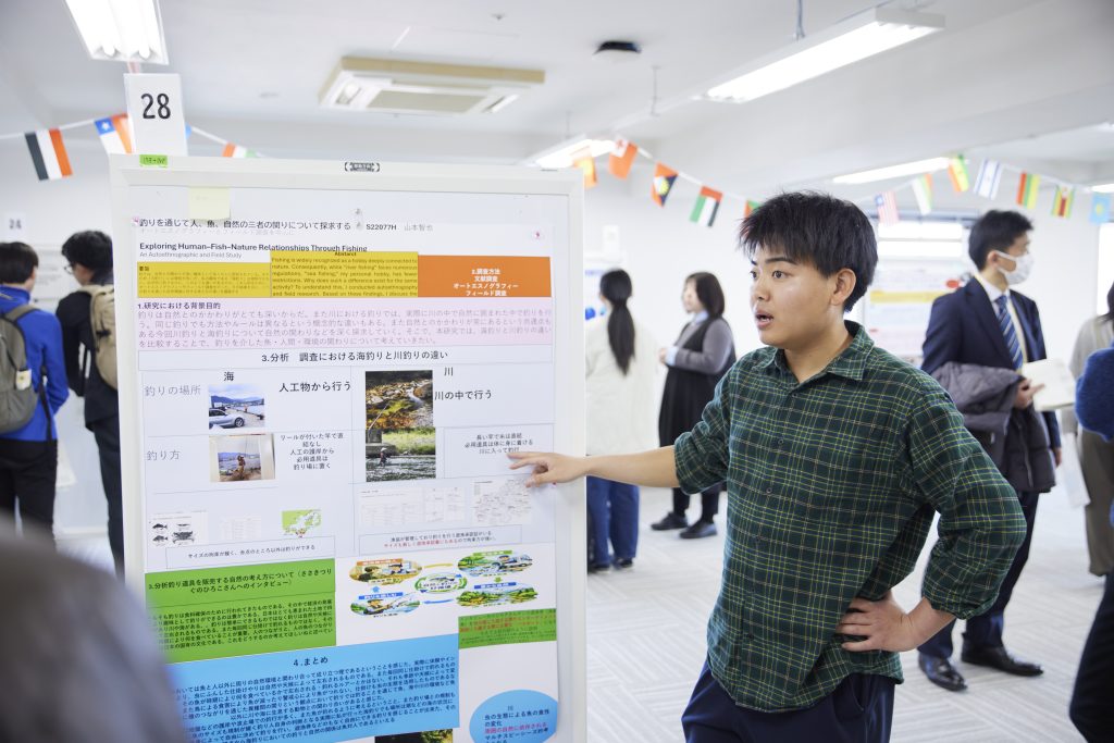 趣味の釣りを楽しむ中で、「川釣り」と「海釣り」のルールの差に疑問を持ちました。川釣りでは遊漁承認証が必要であったり、魚のサイズ規定が厳しかったりと制限が多く、その理由を探ることを卒業プロジェクトのテーマにしました。文献調査に加え、自身の体験を振り返るオートエスノグラフィーやフィールド調査を行い、二つの釣りにおける自然との向き合い方の違いを考察しました。その結果、川釣りは海以上に周囲の生態系や地域環境に強く依存しており、その自然を守るために厳しい規制が設けられてきた背景が見えてきました。また釣具店でのインタビューから、釣りは日本の四季や社会環境、モラルに支えられた文化でもあると気づきました。規制は楽しみを奪うものではなく、自然を守り続けるための仕組みです。今後も環境への責任を意識し、勉強しながら釣りと向き合いたいですし、マナー向上の重要性を発信していきたいと考えています。