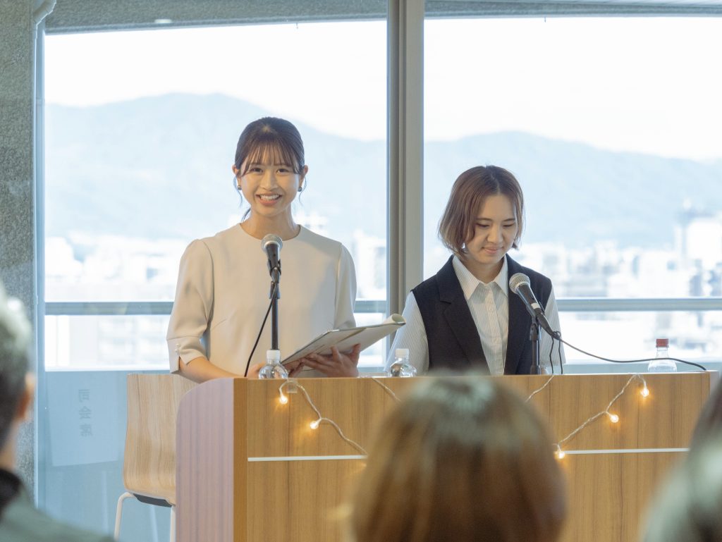 司会者 | ・高田 萌子様 F.D.K.所属/TSS「ひろしま満点ママ」出演中 ・菅田 悠生 3年/シャレオでラジオ活動中 |