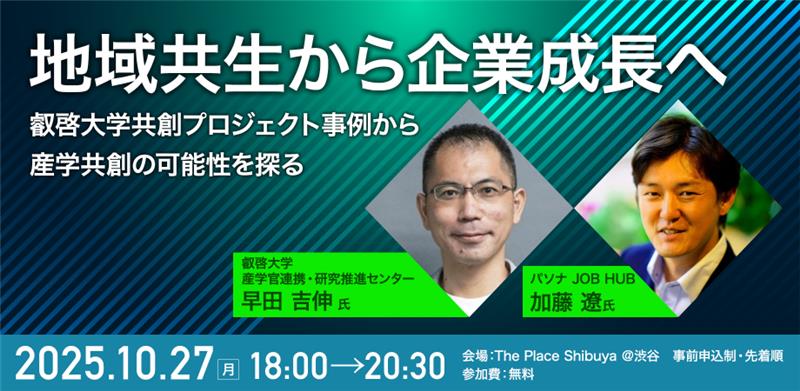 2025年10月27日(月)、イベント「地域共生から企業成長へ ―叡啓大学共創プロジェクト事例から 産学共創の可能性を探る」を開催します。