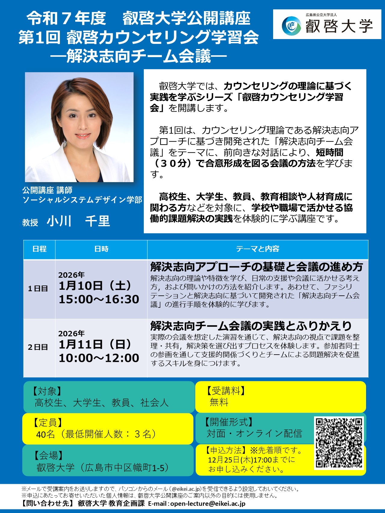 【受講者募集】2025年度公開講座 第1回叡啓カウンセリング学習会:解決志向チーム会議