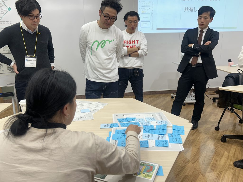 当日は本学で課題解決演習を担当する 松浦先生 も飛び入り参加し、参加者が書いたキャンバスを見ながら「顧客像の深掘りポイント」「価値仮説の置き方」など、実践的なアドバイスをいただきました。