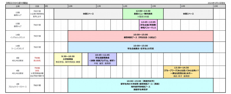 We have set up a booth to provide university explanations and offer individual consultations in English. Feel free to join us to discuss the university curriculum, student life, and other topics!
